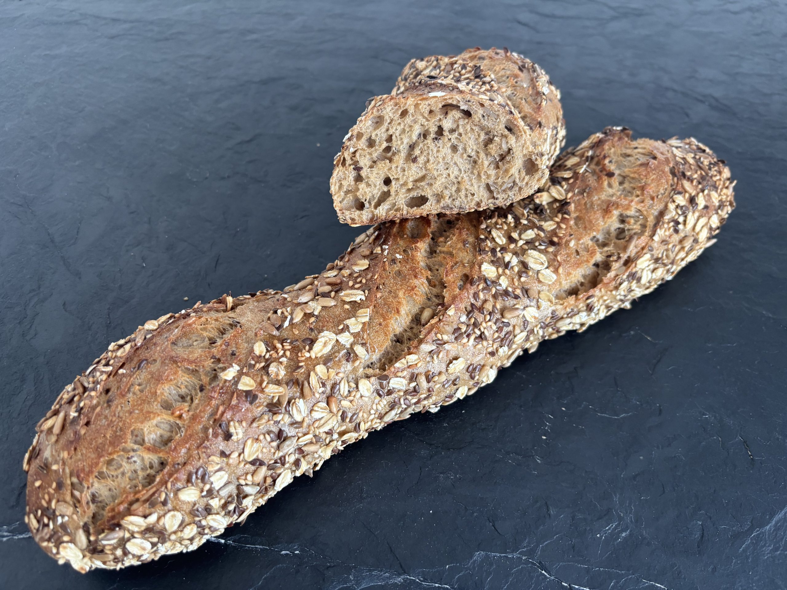 Dinkelnmehl, Weizenmehl, Gerstenmalz, Sonnenblumenkerne, Leinsamen,Seasm, Haferflocken, Wasser, Backhefe, Salz