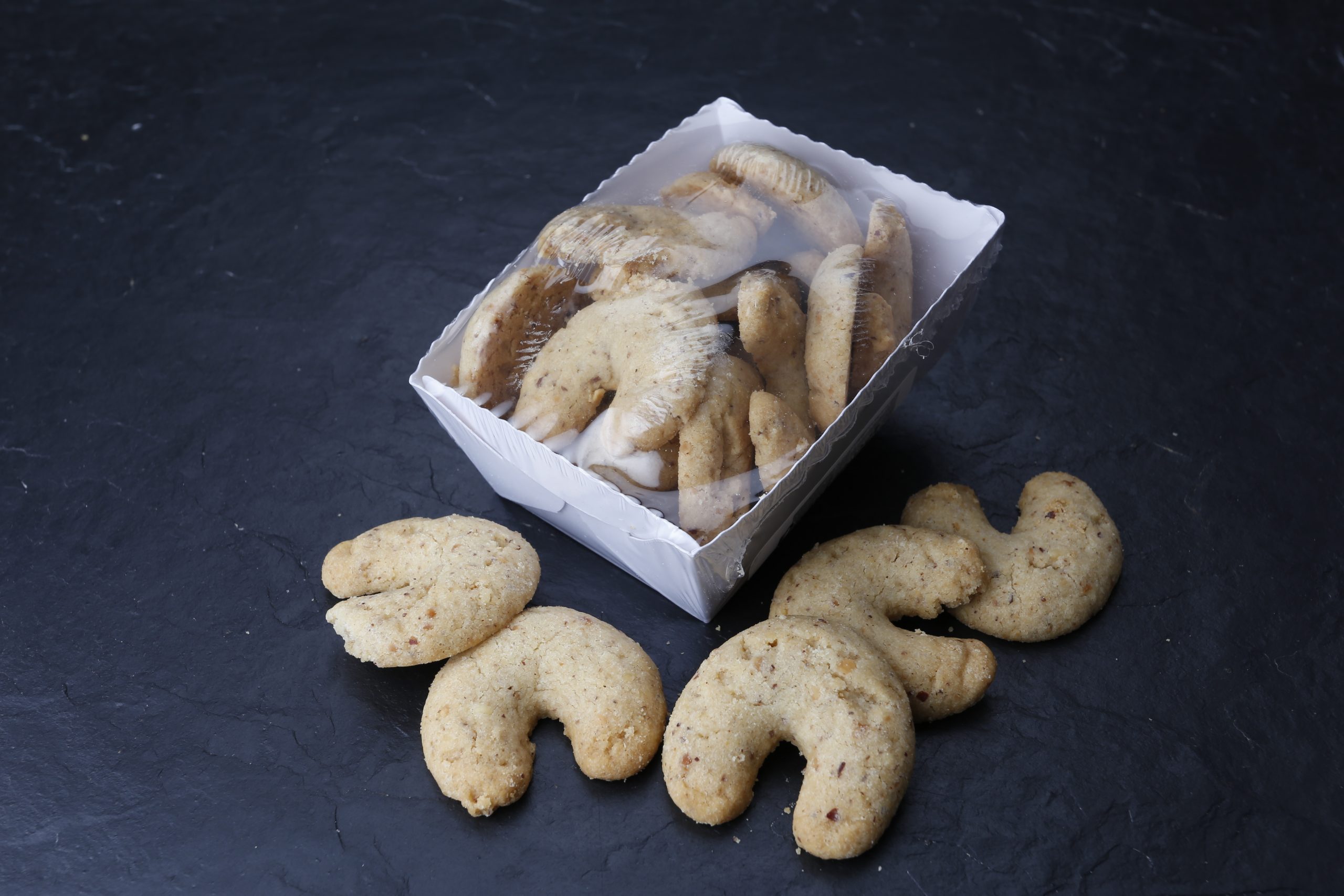Weizenmehl, Butter, Hasselnüsse, Zucker, Vollei,Vanille Aroma, Eigelb, Siedesalz